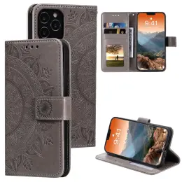 iPhone 12 / 12 Pro - Mandala Fodral - Grå